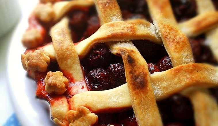 Place the cherries in a medium bowl and add the mixture, stirring gently until the cherries are covered. Remove the pan with the dough from the refrigerator, fill with the cherries and cover with the braid: