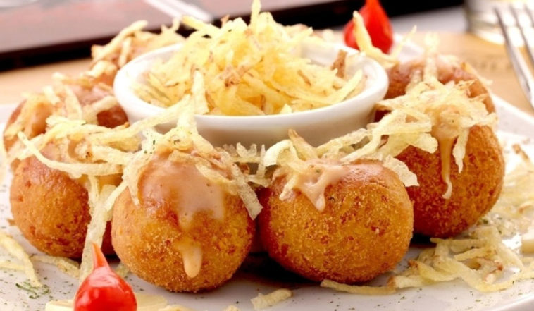 Stir until a dough comes off the bottom of the pan. Turn off the oven and let it cool. Spread wheat flour in your hands and roll the croquette-shaped dumplings.