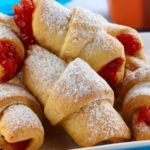 Shape the loaves and bake. After baking fill the breads with the cream.