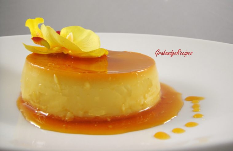 Flan: Also known as crème caramel or caramel pudding, the body of a typical flan is eggy and gelatin-like, with plenty of jiggle room. … It’s essentially baked custard—eggs, gelatin, vanilla, and cream or milk.