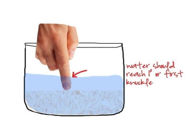 - Add filtered water into the rice cooker, swirling in the pot if necessary so the grains of rice are level and no grains are sticking to the sides of the pot.