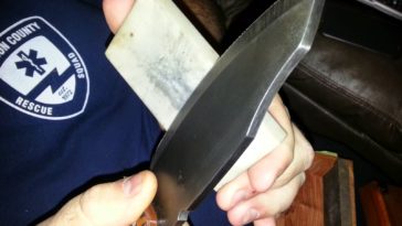 Remember to always cut into the stone and never pull or drag your edge backwards. The blade edge should face in the same direction as your stroke. So, you’re essentially moving the metal away from the edge.