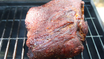 Instead of over 10 hours of cooking time, a good chuck roast can be smoked in just 5 – 6 hours. This is another cut where you want to make sure you get a good quality beef grade and look for marbling throughout.