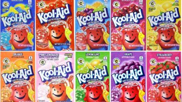 Kool-Aid is bringing back some discontinued flavors as part of a new Retro line! … Along with the original six (Cherry, Grape, Lemon-Lime, Orange, Raspberry, and Strawberry), the soft drink has been available in delicious flavors like Tropical Punch, Pink Lemonade, Black Cherry, Green Apple, Mango, and Strawberry Kiwi.