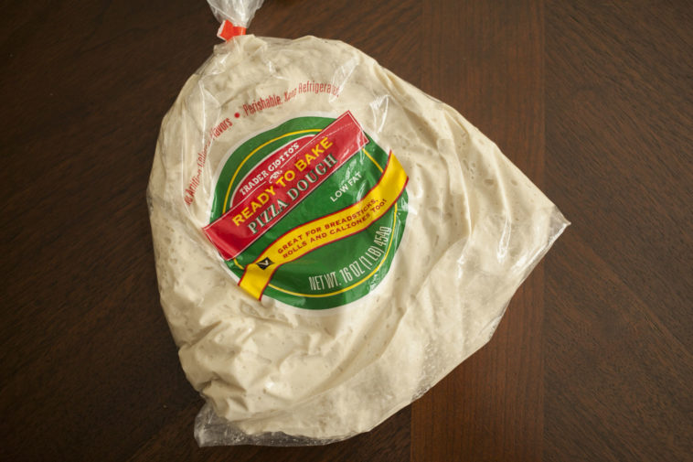 That’s because stretching store bought dough is difficult when it’s cold. Pizza dough needs at least 30 minutes and up to 3 hours to rise, outside of the fridge. Here’s an easy trick to allow the dough plenty of time to rise. Set it near a window or wrap it in a kitchen towel and set it on the counter.