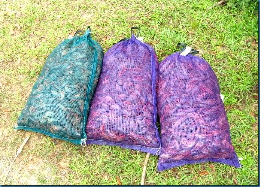 How many pounds of crawfish are in a sack? Each bag on average weighs between 28 to 35 lbs and is typically enough crayfish for 12 or less people, depending on how many other fixings you may have with your crayfish boil.