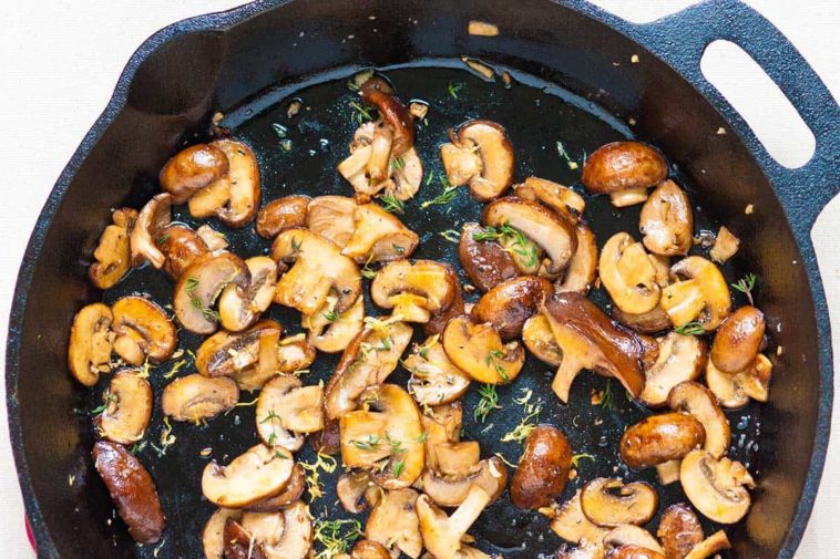 When the oil or melted butter is hot, add the mushrooms. You should hear a sizzle. If the fat isn’t hot enough, the mushrooms will start to water out and steam instead of sautéing. Cook the mushrooms 4 to 5 minutes or until they’re tender and lightly browned.