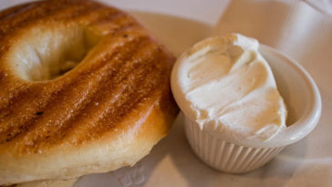 So according to the food safety experts at the US government, cream cheese shouldn’t be out of the fridge for longer than two hours. So if you’re going to serve up a bagel bar with cream cheese at brunch, your best bet from a food safety perspective is to put those tubs of cream cheese on ice.