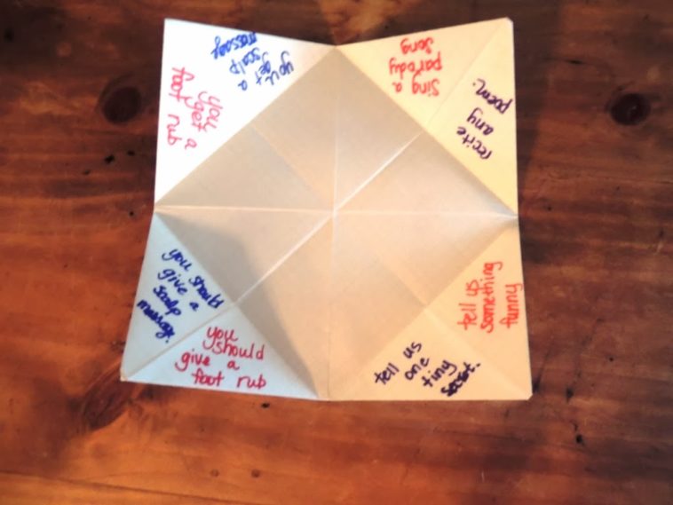 A fortune teller works by having the person who’s fortune is being told choose a color from the ones labeled on the outer folds. The operator of the fortune teller then spells out that color by moving the sides in and out in a pinch and pull motion four times as they spell out “B-L-U-E”.