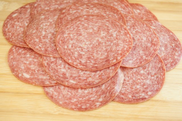 When light shines on a slice of meat, it splits into colors like a rainbow. There are various pigments in meat compounds that can give it an iridescent or greenish cast when exposed to heat and processing. Wrapping the meat in airtight packages and storing it away from light will help prevent this situation.
