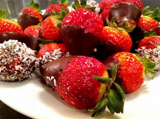 Rinse the strawberries under cool running water and gently pat dry. The strawberries need to be completely dry before dipping, so spread them out and let them air-dry if necessary. Melt the dark chocolate. … Let the chocolate melt, stirring occasionally, until no more lumps remain.