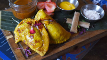 Jamaican beef patties are made with a rich flaky yellow pastry dough filled with seasoned ground beef. The pastry dough is made with flour, butter or shortening and beef suet and salt. The pastry gets it’s color from turmeric powder. You can also use curry or annatto to color and flavor the dough.