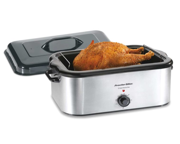 Most 18-quart roasters will fit an 18- to 22-pound turkey, and 22-quart roasters can fit up to 26-pound birds for larger gatherings. Among the other features you’ll want to consider is the oven’s temperature range, which typically maxes out at 450 degrees.