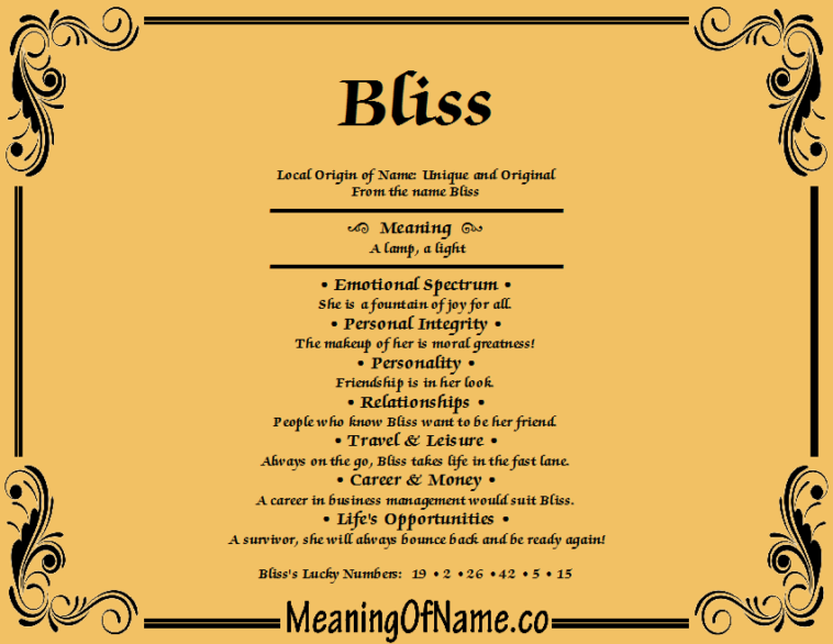 supreme happiness; utter joy or contentment: wedded bliss. … heaven; paradise: the road to eternal bliss. Archaic. a cause of great joy or happiness.