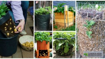 New potato tubers form above the buried seed piece or seed potato. To give the new potato tubers room to expand and grow, soil should be mounded up around the stems of growing potato plants. This process is calling “hilling.” Hilling should happen once or twice during the growing season.