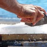 Place Celtic sea salt in mortar (bowl), filling it less than halfway. Hold the mortar firmly in place. Grind the sea salt by applying moderate friction with the pestle in a circular motion. Turn the mortar during the process of grinding to make sure you have ground all of the salt with even consistency.