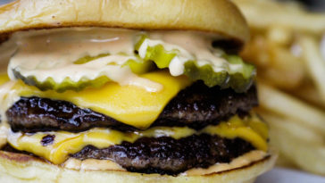 The cheese is Kraft cheese. Just, plain old Kraft cheese that has been specially made for fast food. Special in that it’s stacked in a way that makes it easier to separate the pieces of cheese, making it easier to make a lot of burgers at the same time.