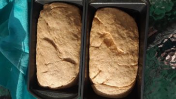 Preheat the oven to 350 F. Bake bread for about 30-33 minutes, or until golden brown on top. Give the top of a loaf a gentle tap; it should sound hollow. Invert the baked loaves onto a wire cooling rack.
