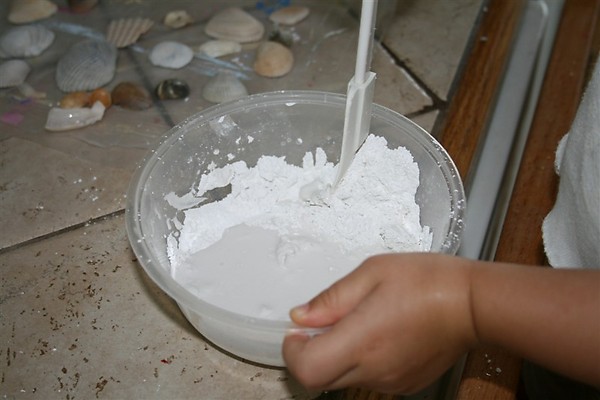Flour, mixed with water and salt, makes pliable plaster. Plaster is the base for art projects such as papier mache, modeling projects and sculptures. … Not only is flour nontoxic and safe for kids, white flour is available in grocery stores for just a few dollars a pound.