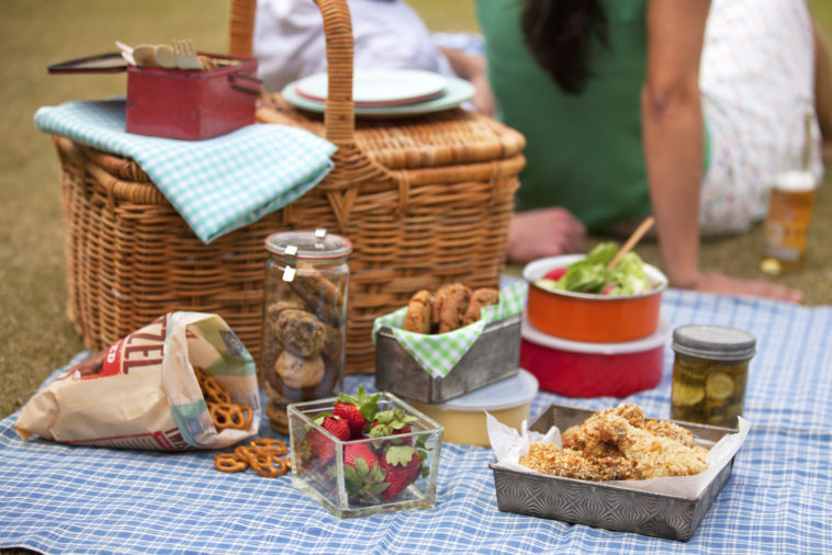 Choices like potato salad, deviled eggs, cole slaw, pasta salad and chips are common items at picnics. Many also like to serve fresh vegetables, cheese and bean salads. For beverages, kids can enjoy fruit punch while the adults can partake (responsibly of course) on wine and beer.