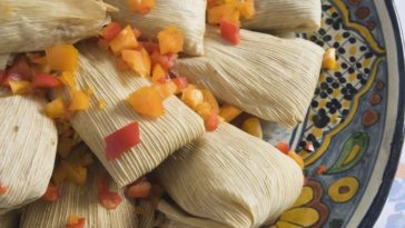Test by dropping 1/2 teaspoon masa into a cup of cold water. If it doesn’t float, simply whip it for a few more minutes with added broth and test again. Proceed to fill and wrap the tamales as directed in each recipe.
