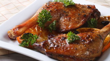 The BBC suggests grilled broccoli with a light coating of flavourful olive oil. Steamed or grilled vegetables also complement duck a l’orange. Rachel Ray recommends serving duck a l’orange with sliced asparagus steamed with rice, almonds, scallions and parsley.