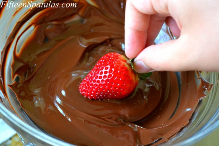 Rinse the strawberries under cool running water and gently pat dry. The strawberries need to be completely dry before dipping, so spread them out and let them air-dry if necessary. Melt the dark chocolate. … Let the chocolate melt, stirring occasionally, until no more lumps remain.