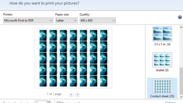 Now select File > Print or press Ctrl + P together to open the Print menu. At the top of the window that appears, make sure the correct printer and paper size is selected. Remember, it doesn’t matter if the paper you’re using is larger than the size of image you want to print.