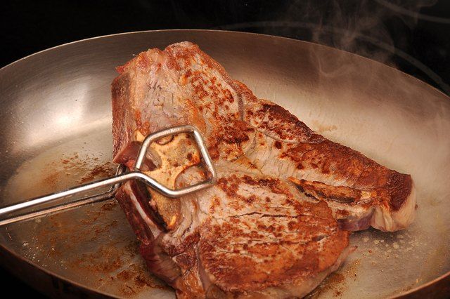Preheat your skillet over high heat. Cut off some fat from your steaks around the edges and use it to grease your pan for the best, most natural flavor. Alternatively, you can use a little bit of butter or olive oil. Sear your steaks for three to four minutes on each side, depending on how well you like them done.