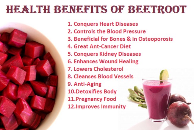 Beets help lower blood pressure, reduce the risk of cancer, supports brain health, may fight inflammation, and can improve athletic performance. Eating beets too much can cause your pee or stools to turn red or pink, yet this is not harmful. Eating them daily may increase the risk of kidney stones.