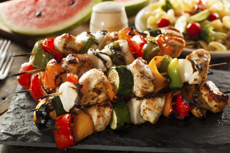 Soak your wooden skewers in water for at least 30 minutes before using them to cook with. That way the skewers are water logged and won’t catch on fire while you’re cooking your soon-to-be delicious kebabs. Remember, only you can prevent kebab fires.