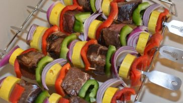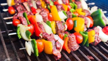 Soak your wooden skewers in water for at least 30 minutes before using them to cook with. That way the skewers are water logged and won’t catch on fire while you’re cooking your soon-to-be delicious kebabs. Remember, only you can prevent kebab fires.