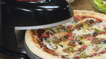There’s a reset button located under the rotating pizza pan. You have to remove the pizza pan and press that reset button while the Pizzazz pizza oven is plugged into a wall socket. That’s the only way to make the Pizzazz pizza oven work again if it does overheat.