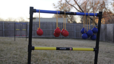 If a player goes over 21, that player or team’s score goes back to 13. After all teams have tossed their bolas, the score is determined by the amount of bolas hanging from the rungs. Players can knock off other bolas or place their bolas on the same rung to cancel out the opponents score.