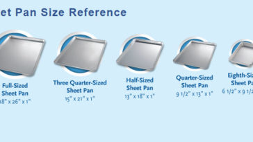 Cake sizes are named after the sheet pan that the cake is baked in. … A half-sheet is half that size, and a quarter-sheet or 9×13-inch pan, which usually results in 16 to 24 servings of cake, is one-quarter the size.