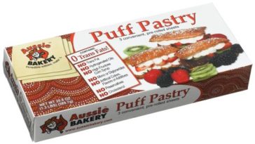 Puff pastry is best for pastries, sausage rolls, sweet or savoury pies, turnovers and palmiers. It is usually made with canola or a vegetable oil. Butter puff pastry is puff pastry made with butter instead of the vegetable oil and no sugar.