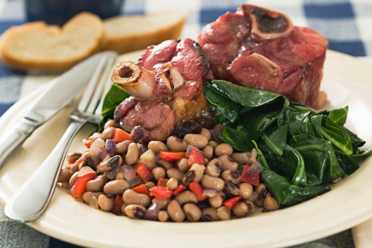 Black-eyed peas are served with rice in the traditional Southern U.S. dish called “Hoppin’ John” for New Year’s Eve. Or, the peas can be part of a soup. In Italy, lentils mix with pork for a lucky dish.