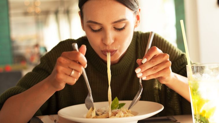 The flesh will also separate easily into spaghetti-like strands. You can also taste it right now — if the noodles are still a bit crunchy for your taste, put the squash back in the oven for 15 to 20 minutes more.