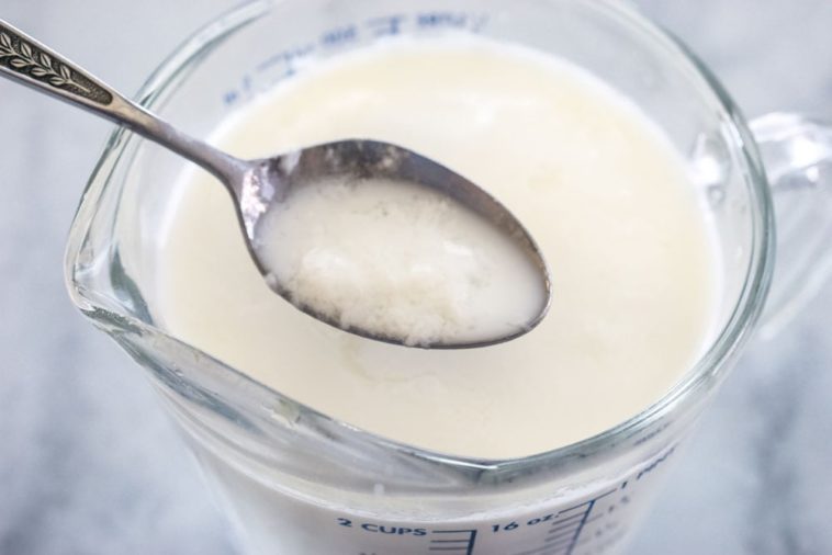 For every 1 cup of milk, stir in 1 tablespoon lemon juice or vinegar.