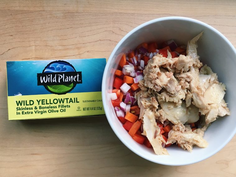 Here’s a way to use that whole dang can of tuna (or salmon). Use the liquid fish oil in place of a dressing or olive oil. Just boil your favorite noodle and get to mixing!