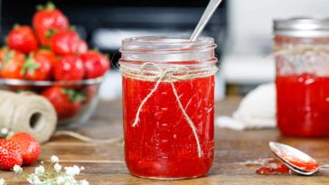 First, remember that freezer jam is often softer and needs 24-48 hours to properly set. If you’ve waited that time and you still don’t like how thin your jam is, use a rubber scraper and place jam back in a medium sized saucepan over medium-high heat. Combine 1/4 cup granulated sugar and 2 tsp cornstarch.