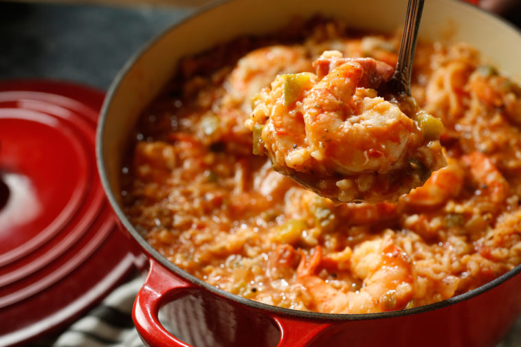 Tip: Serve the Jambalaya soon after the dish is finished cooking. The rice will continue to absorb the liquid, and the dish can become dry if it sits too long. Jambalaya is a perfect one-dish dinner — it’s already so chock-full of ingredients, you won’t need much more to round out the meal.