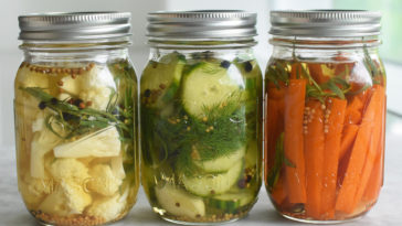 « Pickles are about vinegar and salt, not sweetness, » says Perry. Yes, you should have some sugar, but be wary of recipes that call for more than a ¼ cup of sugar. Your brine should lean salty, not syrupy. … Some vegetables, like crunchy carrots and okra, should be boiled a little before pickling.