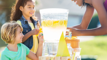 A lemonade stand starts strong if it’s located in a safe, accessible area with high foot traffic. If you live in a busy area, your front lawn, stoop, or driveway might be ideal.