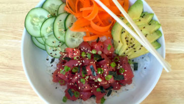 Generally speaking this kind of bowl is exceptionally healthy. Packed full of omega 3 fats, nutrient rich vegetables and minimal calories and processed carbohydrates, a traditional poke is a great choice nutritionally.