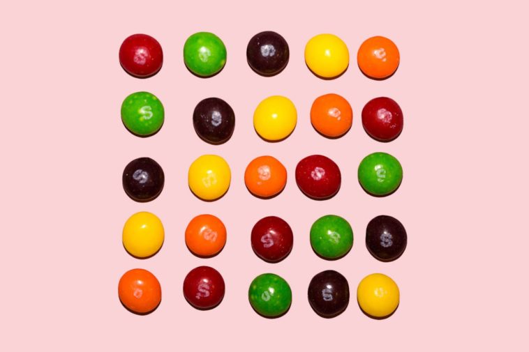 Skittles contain nine different artificial colors and hydrogenated oil (aka trans fats). These chemically engineered fats can be lethal to your cholesterol health. They cause plaque to accumulate inside your arteries, which can cause a heart attack.