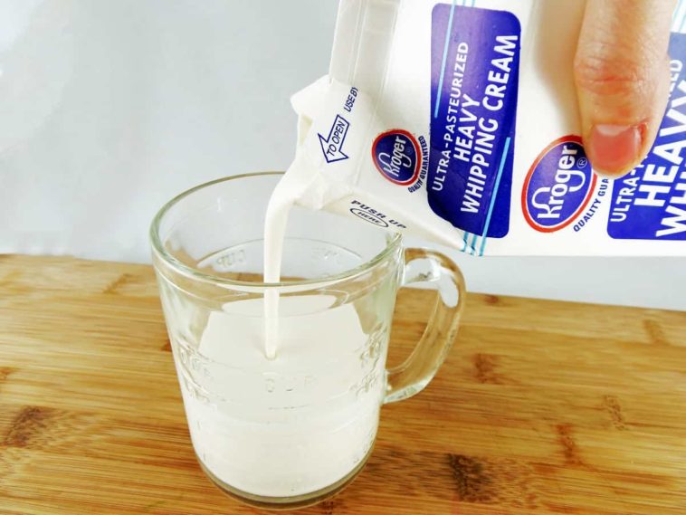 To make 1 cup of heavy cream, mix 2/3 cup of whole milk with 1/3 cup melted butter. Really, it is that simple. As an alternative, if you don’t have milk on hand, you can also use 1/6 cup butter and 7/8 cup half-and-half.