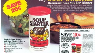 Soup Starter (originally called Homemade Soup Starter) was a base mix for homemade soup that came out in 1981. Grass soups and the brand began disappearing. … By 1995, Wyler’s was a Heinz product and Soup Starter has all but vanished in most parts of the country.