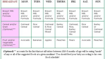 Start to introduce solid foods around 6 months of age (not before 4 months). Your baby will take only small amounts of solid foods at first. Start feeding your baby solids once a day, building to 2 or 3 times a day.