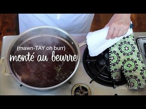 Monter au Beurre is a French term used to describe the process of adding or whisking in whole, cold butter into a sauce or puree at the end of the cooking process.